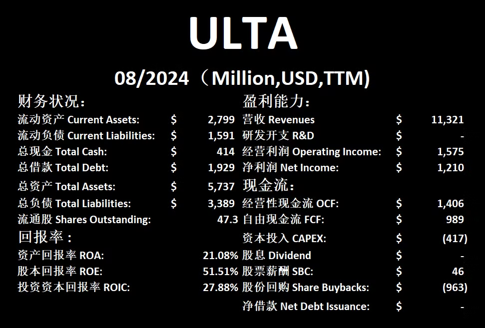-ULTA不在我的能力圈内,在巴菲特建仓前,我没怎么关注过。
