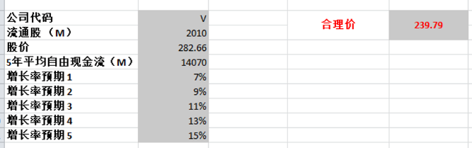 使用了5年平均FCF 14.07B 最高CAGR使用了,合理价239.79