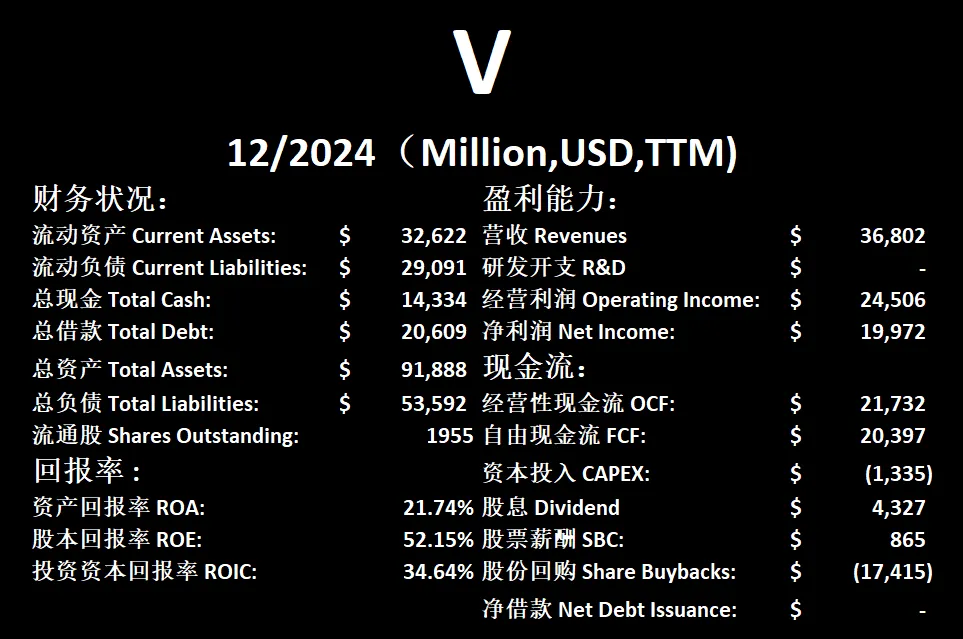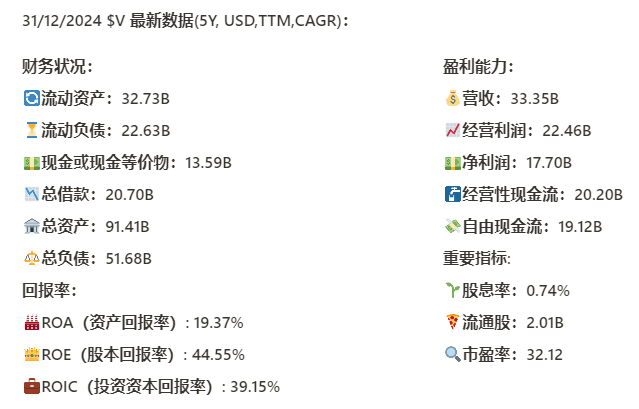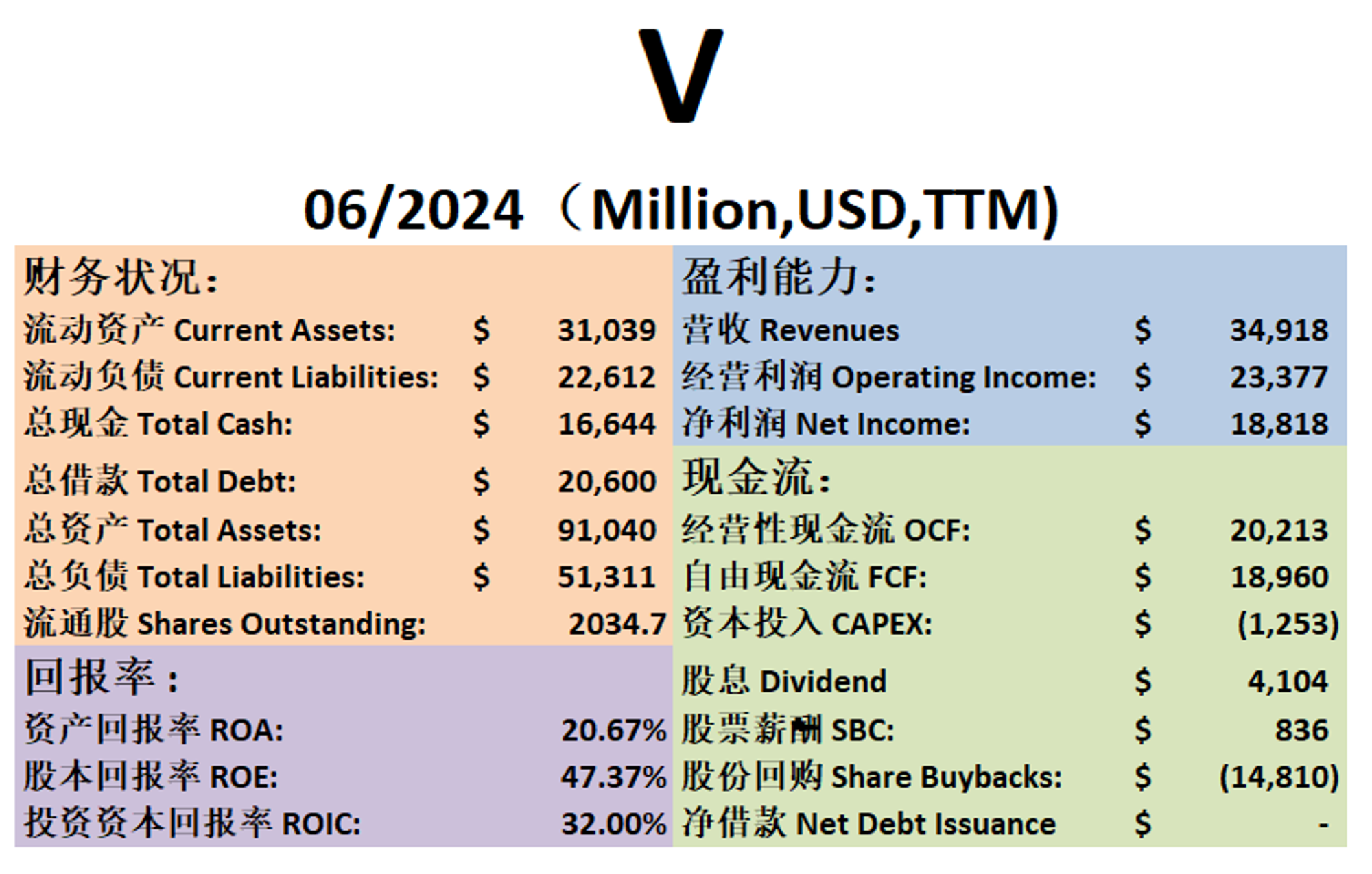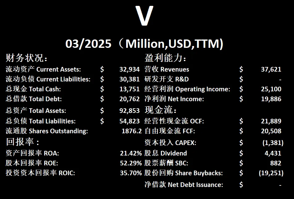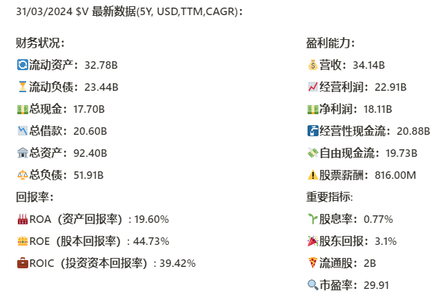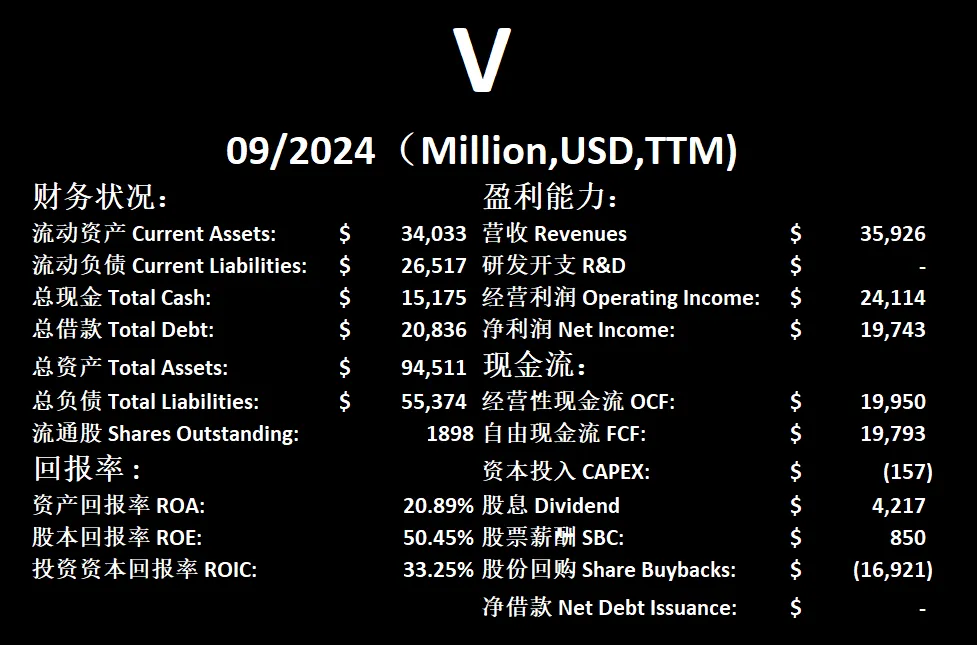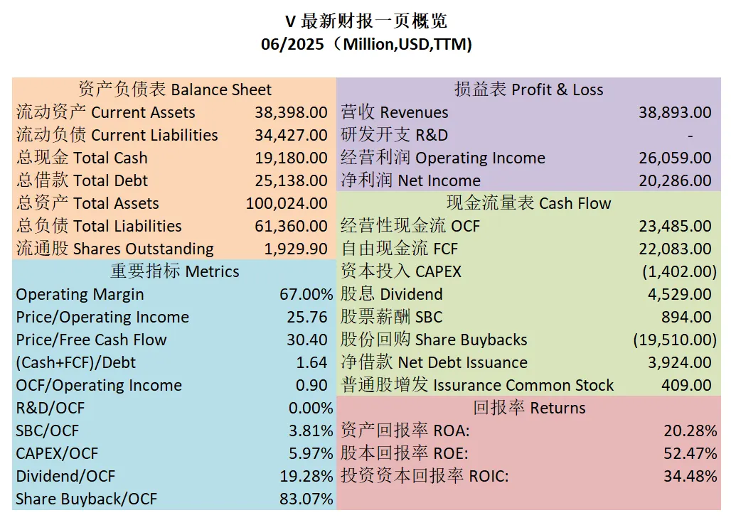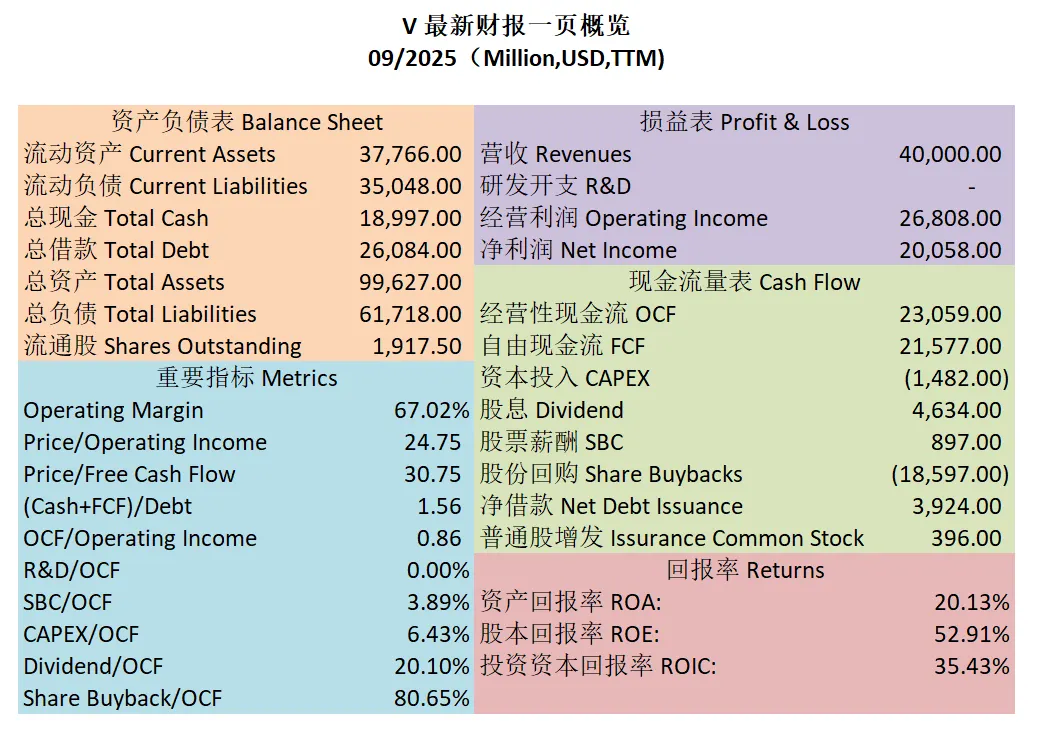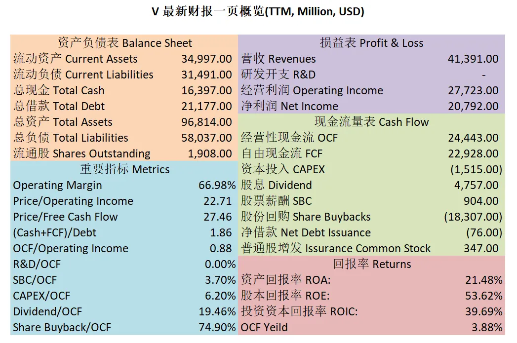 $V 最新财报数据一页概览
