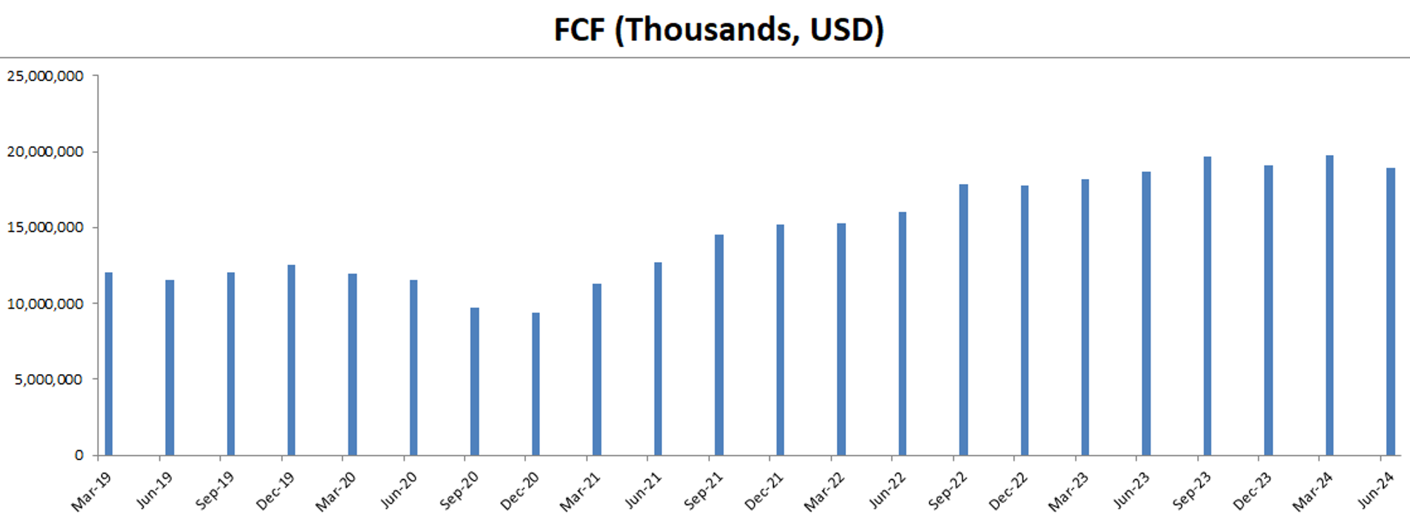 最新FCF为19.73B,5年CAGR为9.64%