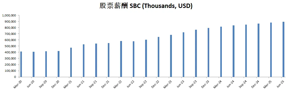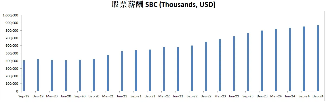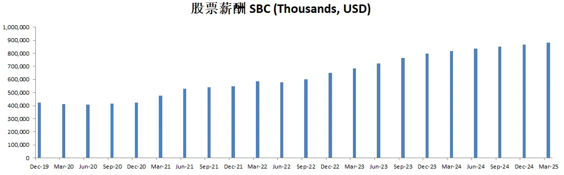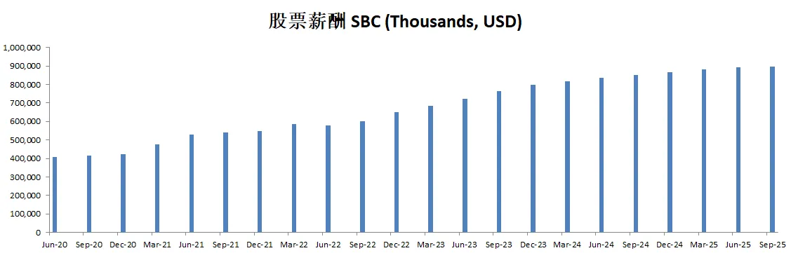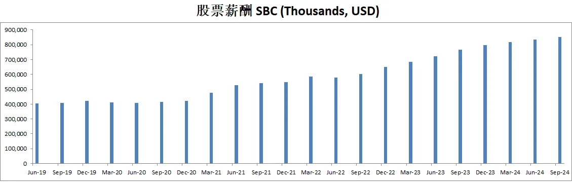 和科技巨头比起来,Visa的股票薪酬不算高,最新只有816M