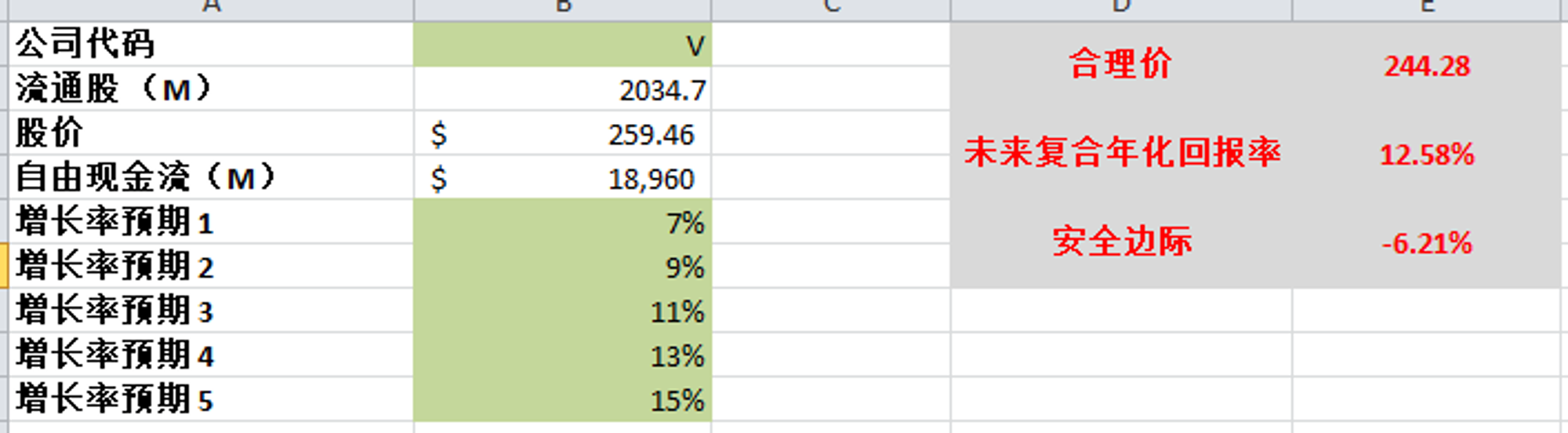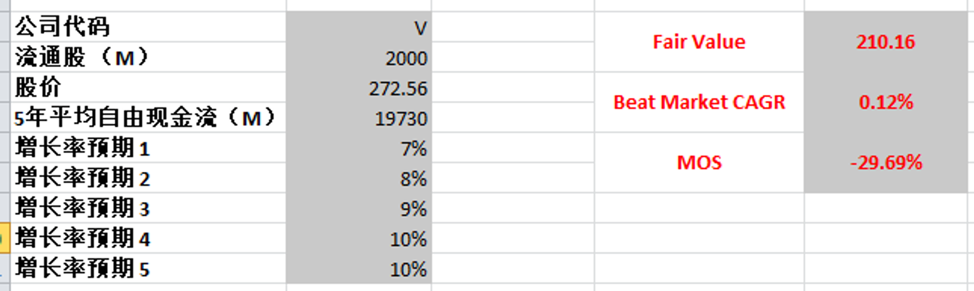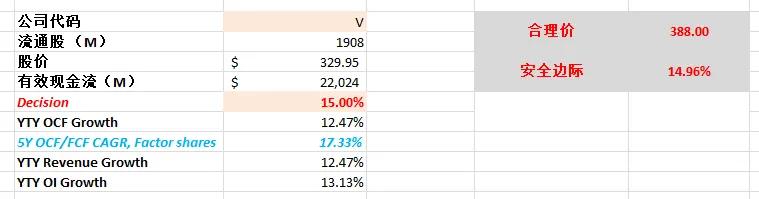 -根据我的估值,目前调整过后,市场对Visa的定价基本合理,目前不存在安全边际