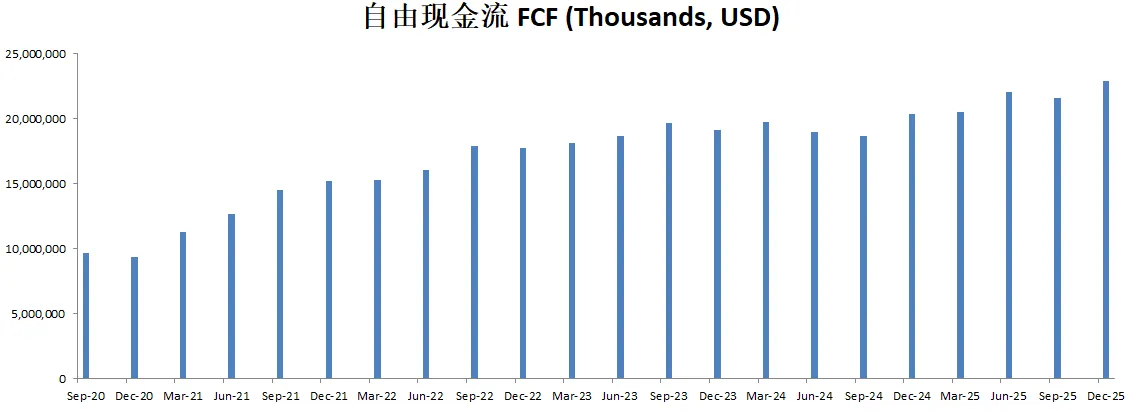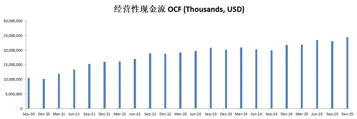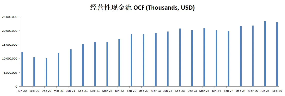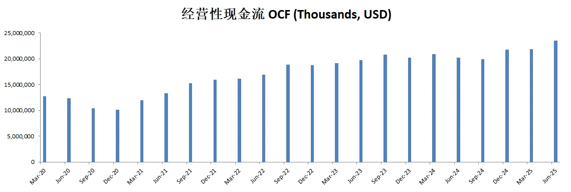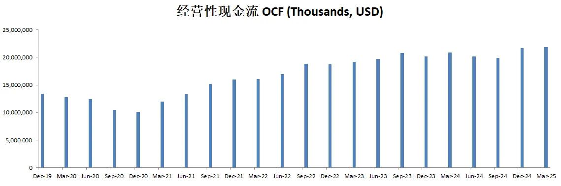 -由于CAPEX很小,所以FCF几乎就是OCF的体量