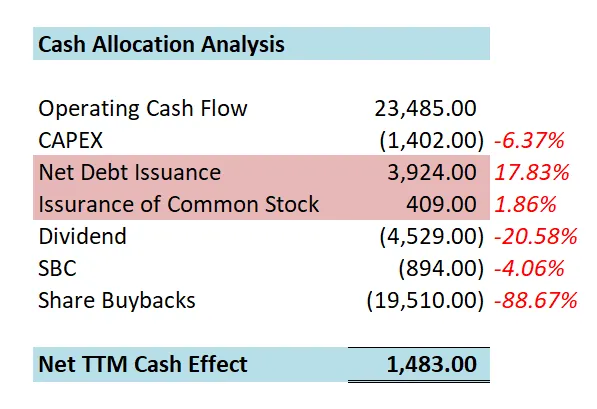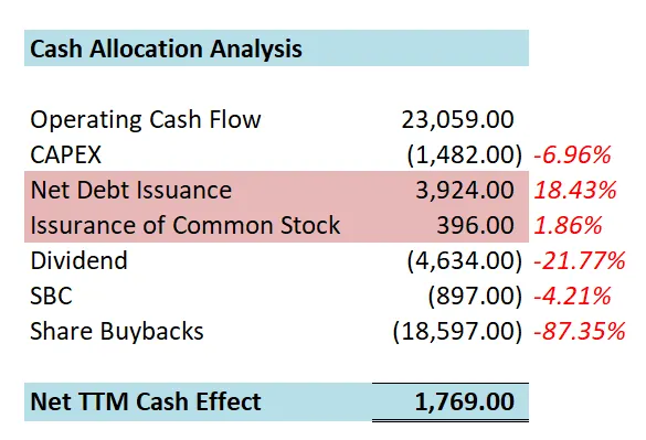 -股份回购很大,占FCF 78.11%