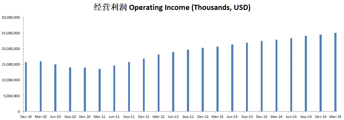 这里值得注意的是,Visa的经营利润率高到令人发指,34.14B Top-line营收,居然有22.91B经营利润,经营利润率高达67.1%