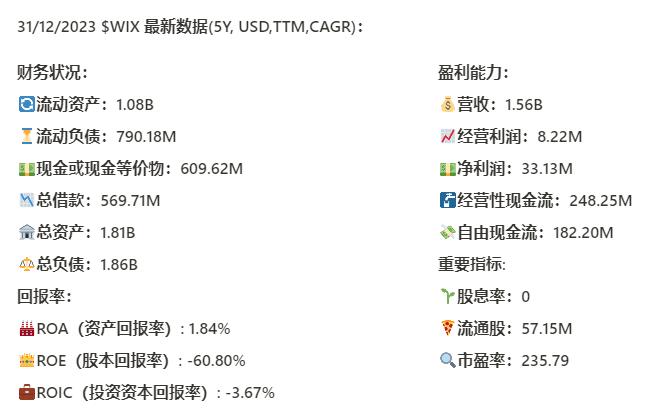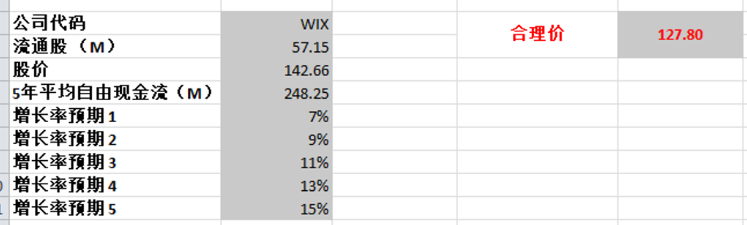 从我的估值上来说,目前市场对WIX定价有点过高了,没有安全边际