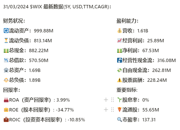 我们来分析下,截至24年3月,WIX的表现